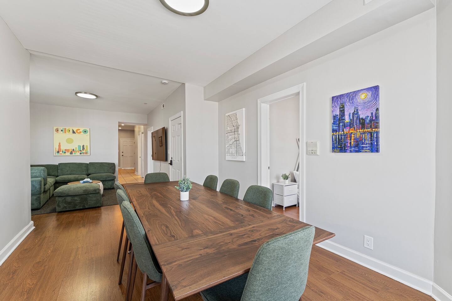 Enjoy comfort and convenience in this updated 3-bedroom unit located near the Illinois Medical District and UIC. The spacious layout includes a modern kitchen, bright dining nook, cozy living area with a large sectional, and thoughtfully furnished bedrooms—ideal for families, professionals, or long-term guests. This fully furnished second-floor unit blends comfort and functionality. Quick access to public transit, major expressways, parks, and downtown Chicago makes this a perfect city stay!